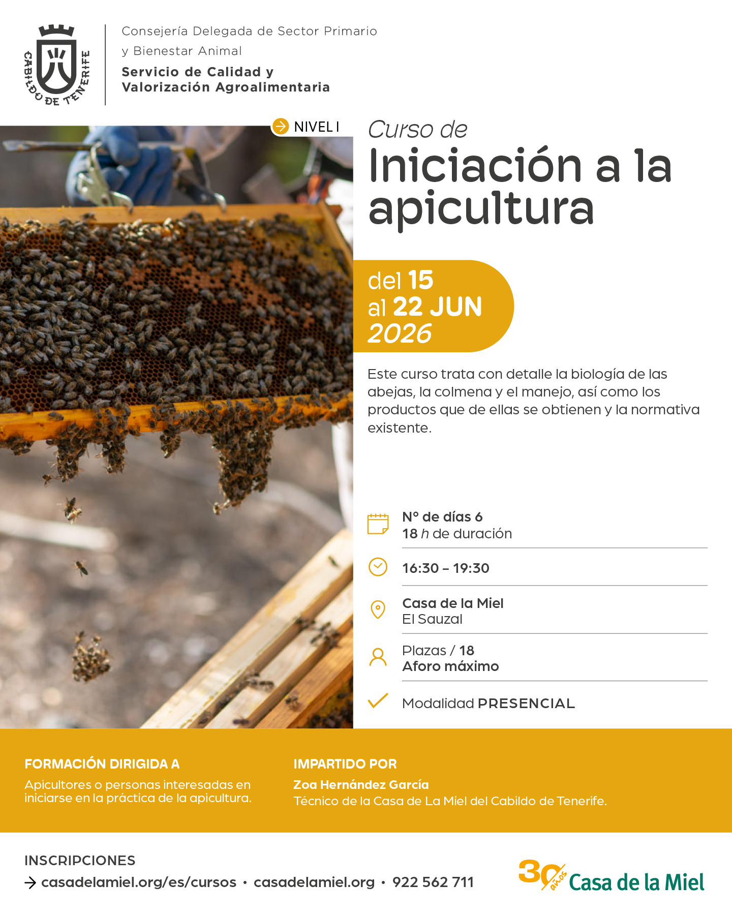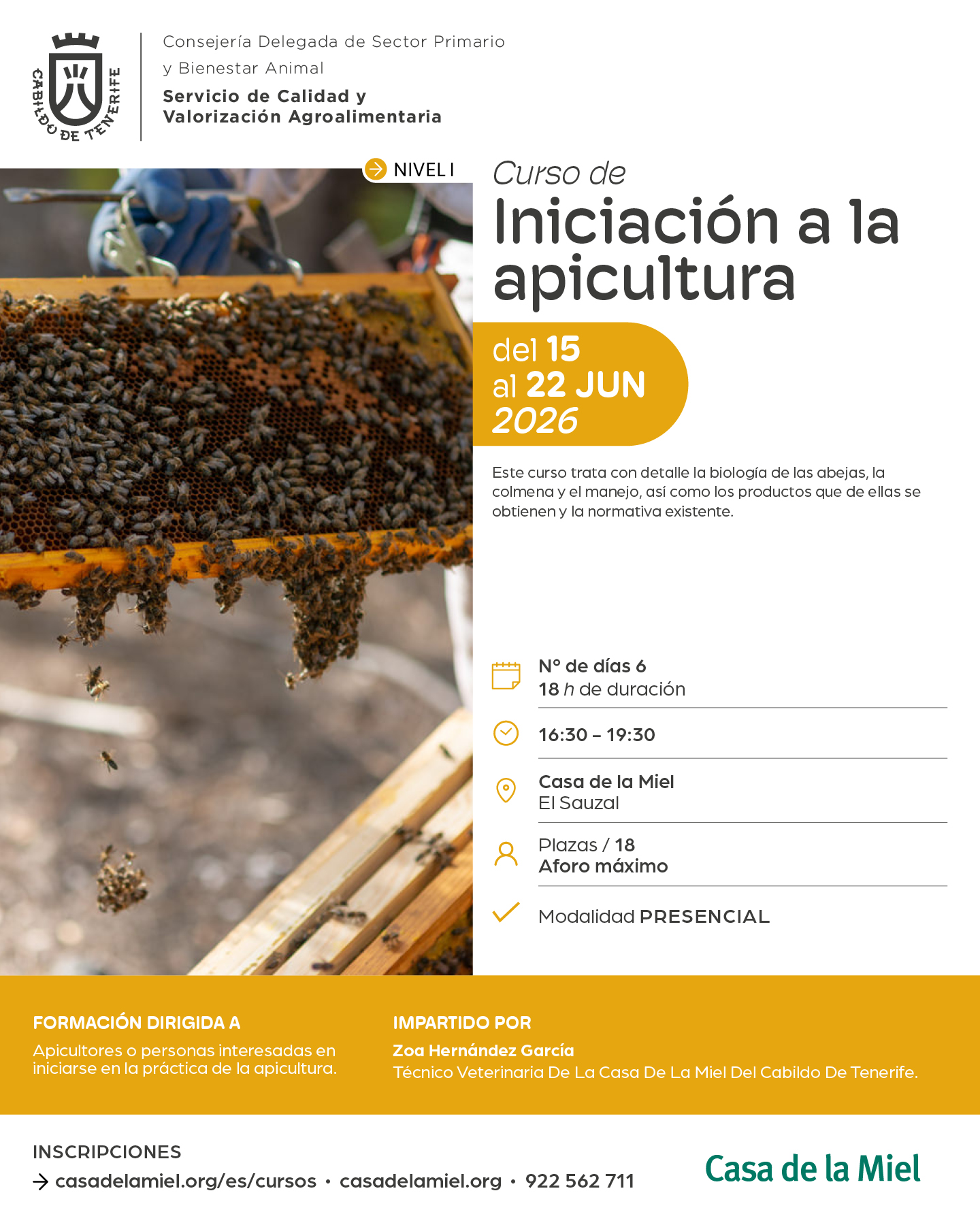 Correrá a cargo de Dña. Zoa Hernández García, Técnico de la Casa de la Miel del Cabildo de Tenerife y de apicultores profesionales encargado de las prácticas.
