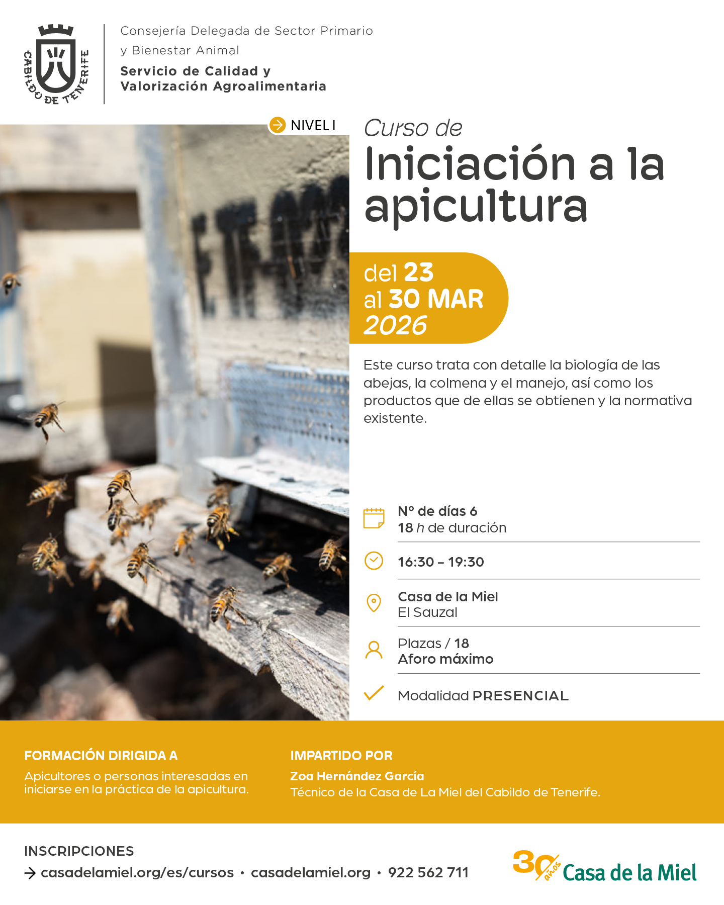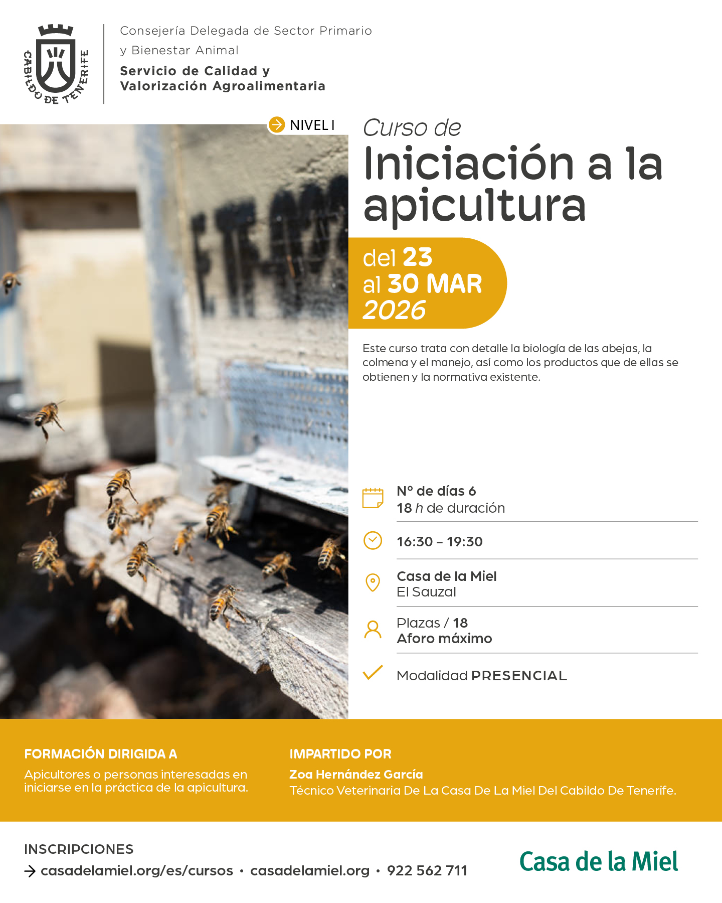 Correrá a cargo de Dña. Zoa Hernández García, Técnico de la Casa de la Miel del Cabildo de Tenerife y de apicultores profesionales encargado de las prácticas.